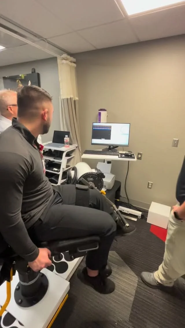 Then we’ll go to the Humac NORM isokinetic system for testing that isolates each individual muscle for strength testing and rate of torque development.