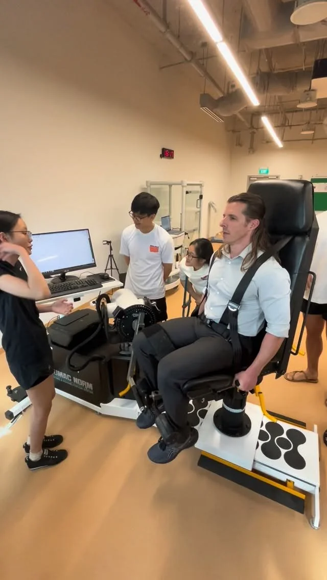 When you come in, we’ll start with a 15-20min warm-up starting either on the treadmill or bike, and then we’ll do a general movement warmup in the gym. Next, we’ll move on to the tests and we start with the Vald ForceDecks System which looks at the entire lower extremity strength and power.