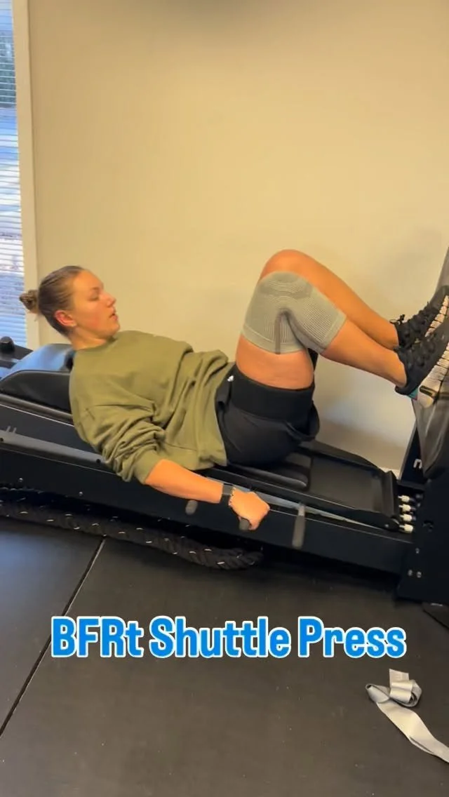 Blood Flow Restriction training (BFRt) combines limb occlusion and low-load exercise to trigger the body’s natural anabolic pathways. You get the same training effect of exercising at light loads with BFR as you do with heavier loads without BFR. This allows us to get the strengthening effects earlier in the rehab process while your injury limits how heavy you’re able to load.